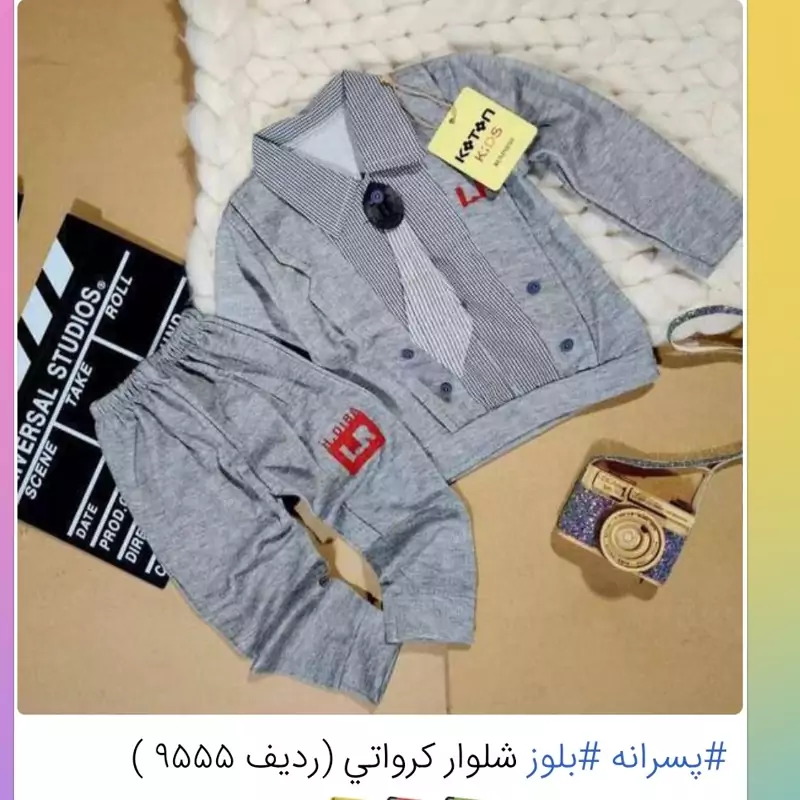 ناموجودست لباس بلوز شلوار کرواتی پسرانه جنس پشترویرا در سایز 35.40