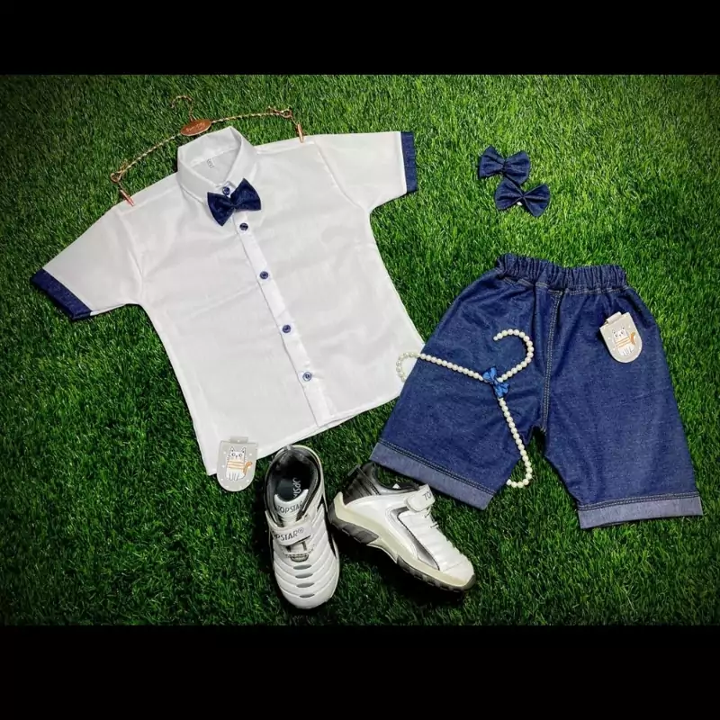 ناموجودپیراهن شلوارک مجلسی پسرانه پاپیونی شیک تک رنگ در سایز 35.40.45