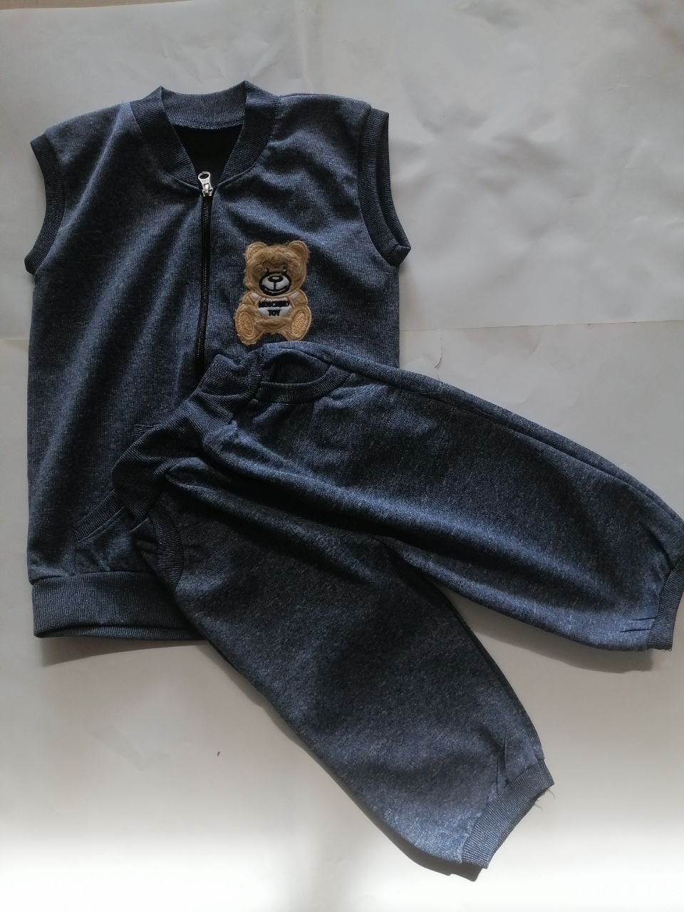 لباس پسرانه جلیقه جنس ژیله با شورتک آبی نفتی سایز ۴۵