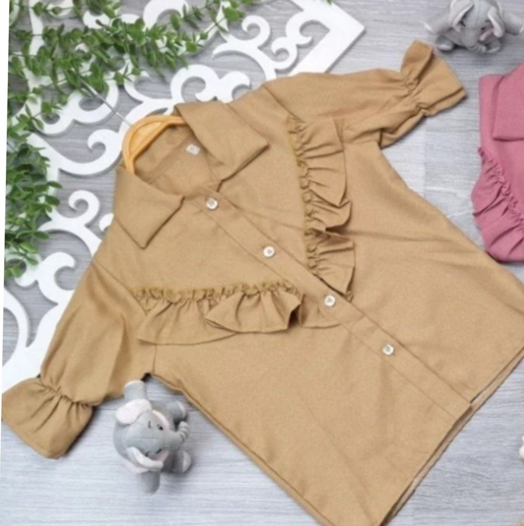 بلوز دخترانه یقه چین مجلسی رنگ کالباسی ،
