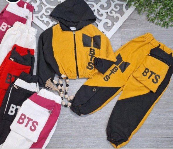 کراپ شلوار دخترانه سایز بی تی اس شلوار +کراپ+کیف سایز ۶۰
