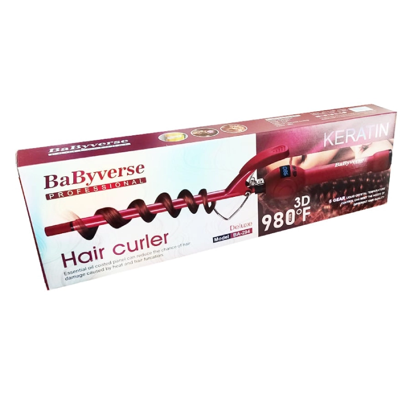 فرکننده مو یا بابلیس مو بیبی وری مدل BA-294 سایز 9 میلی متر دارای صفحه دیجیتالی و کلید تنظیم درجه کم و زیاد دما مناسب استفاده خانگی و سالنی