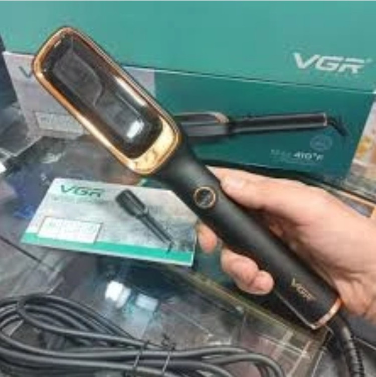 برس حرارتی دندانه ریز وی جی آر دندانه های سرامیکی دکمه روشن و خاموش با کنترل میزان دما از 250 درجه تا 410 درجه فارنهایت قدرت 50w صفحه نمایش گردش سیم 360 درجه گیره جهت آویز طول سیم 2 متر