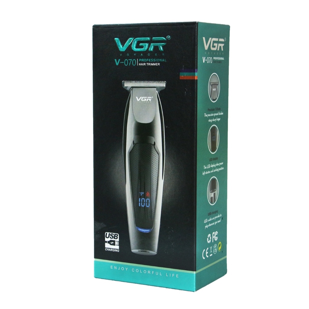 برند وی جی آر از برندهای محبوب که به دلیل کیفیت و قیمت مناسب نظر بسیاری از مخاطبین را به خود جلب کرده است . ماشین اصلاح وی جی آر 070 که جنس تیغه آن استیل ضد زنگ و دارای خطزن است مناسب استفاده موی صورت و بددن میباشد اندازه اصلاح آن 0/1 نزدیک به صفرزن است و با 90 دقیقه شارژ میتوان 60 دقیقه با باتری از آن استفاده کرد دارای نشانگر شارژ و تنظیم سرعت میباشدو مناسب سفر است