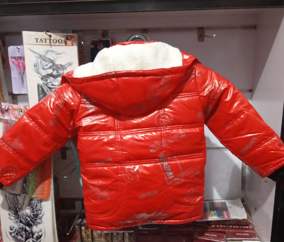 کاپشن دخترانه قرمز سیلیکونی نرم تو کرکی کلاه دار