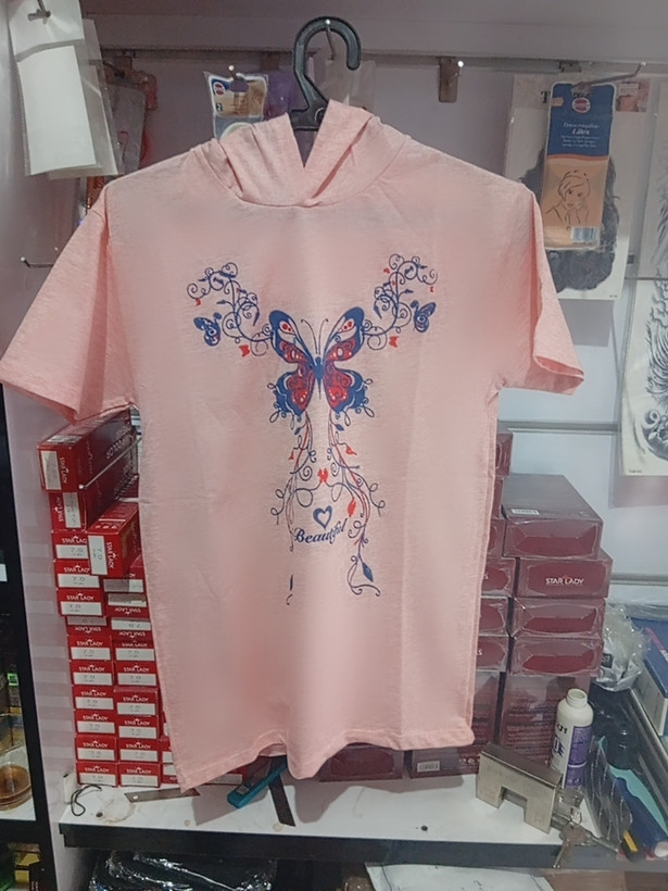 تیشرت دخترانه کلاه دار 2عددی سایز 55(رنگ گلبهی،لیمویی)