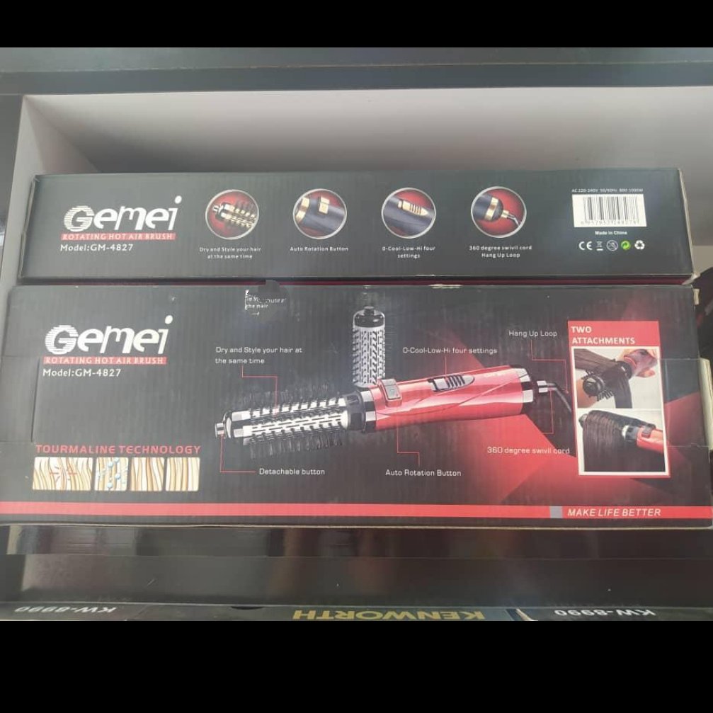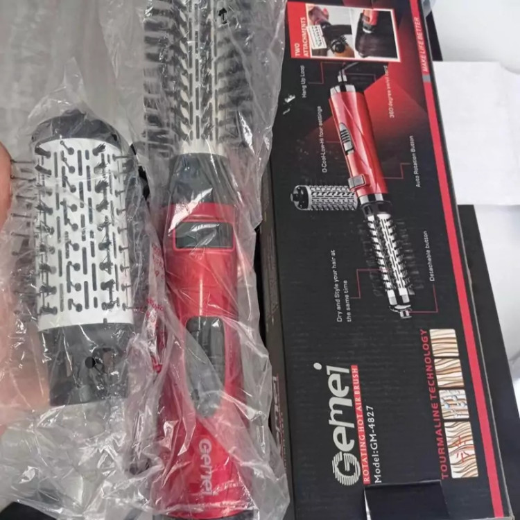 سشوار چرخشی برس دار جیمی مدل GM-4829 مارک Gemei یه دونه از برس ها استیلی میباشد دومی پلاستیک مقاوم در برابر گرمای بالا دارای دو تا برس قابل تعویض دارای کلید راست گرد و چپ گرد کیفیت عالی