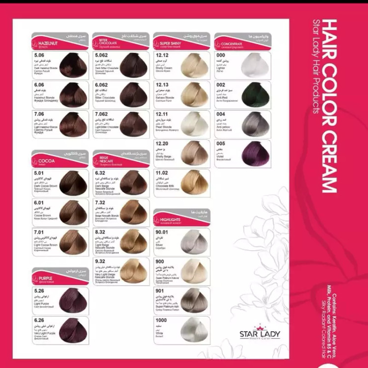 رنگ موی با کیفیت مارک استار لیدی حجم 120 میل دارای مواد کراتین برای موها رنگ موی استار لیدی با آمونیاک خیلی کم میباشد حاوی روغن آرگان،روغن زیتون ، روغن جوجوبا ،روغن ماکادمیا میباشد آبرسان و جلوگیری از خشکی و موخوره حاوی کراتین ترمیم کننده بافت کراتین مو حفظ رطوبت مو و جلوگیری از خشکی و آسیب دیدگی انها تاریخ انقضاء تا سه سال قیمت رنگ هر عدد 43 تومان اکسیدان 180 میل استار لیدی 25 تومان اکسیدان 150 میل دورلایت قیمت 20 تومان تاریخ انقضاء تا 2 سال