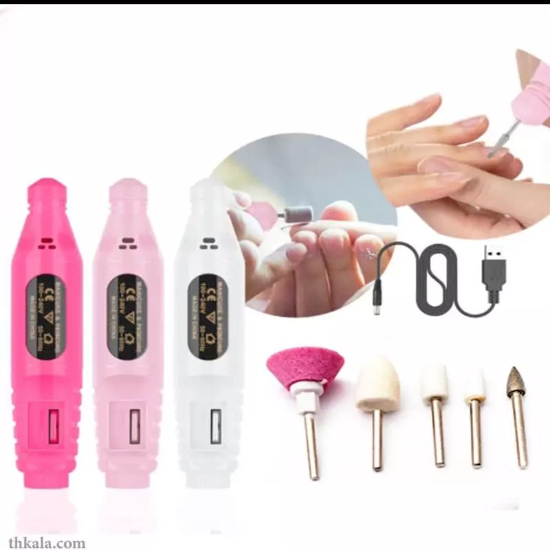 سوهان کاشت ناخن با ورودی برق USB مخصوص آموزش کاشت ناخن آبی دارای 5 عدد سرسوهان قابل تعویض