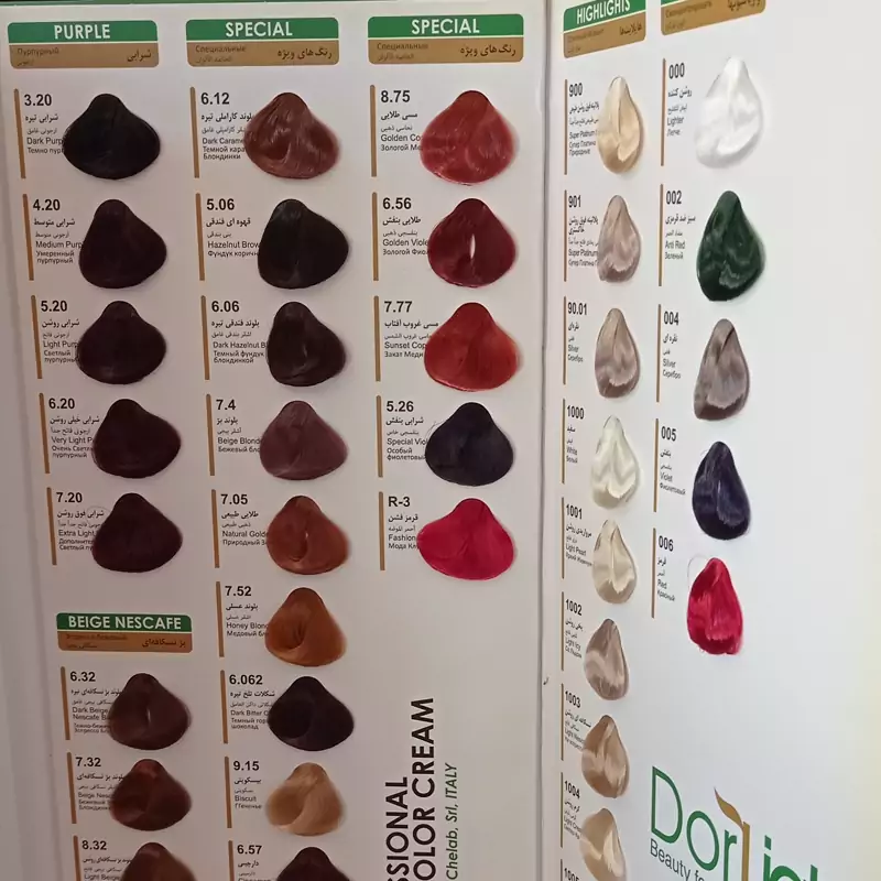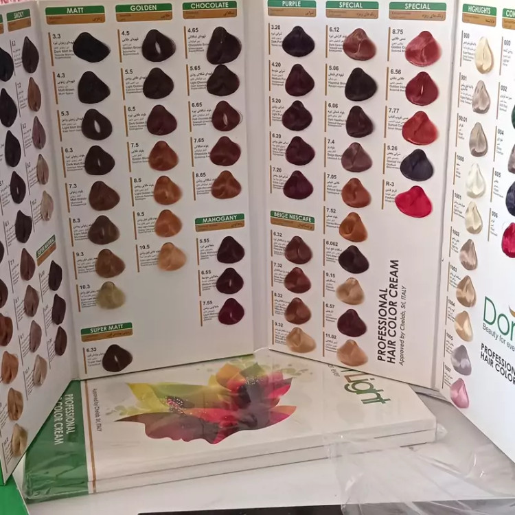 آلبوم مویی و کاتالوگ رنگ موی مارک دورلایت دارایه 90 شماره رنگ رنگ موی و اکسیدان دورلایت نیز موجود میباشد
