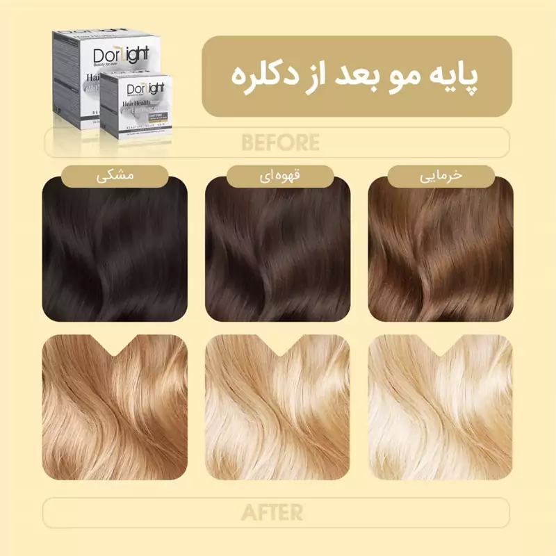 پودر دکلره سفید دورلایت با وزن 500 گرم بدون حساسیت پودر آبی دورلایت هم موجود میباشد