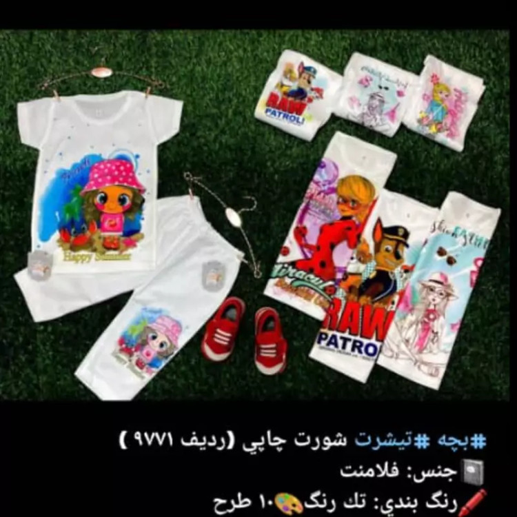 لباس تیشرت تی شرت شلوارک بچه گانه چاپی جنس فلامنت در سایز 35