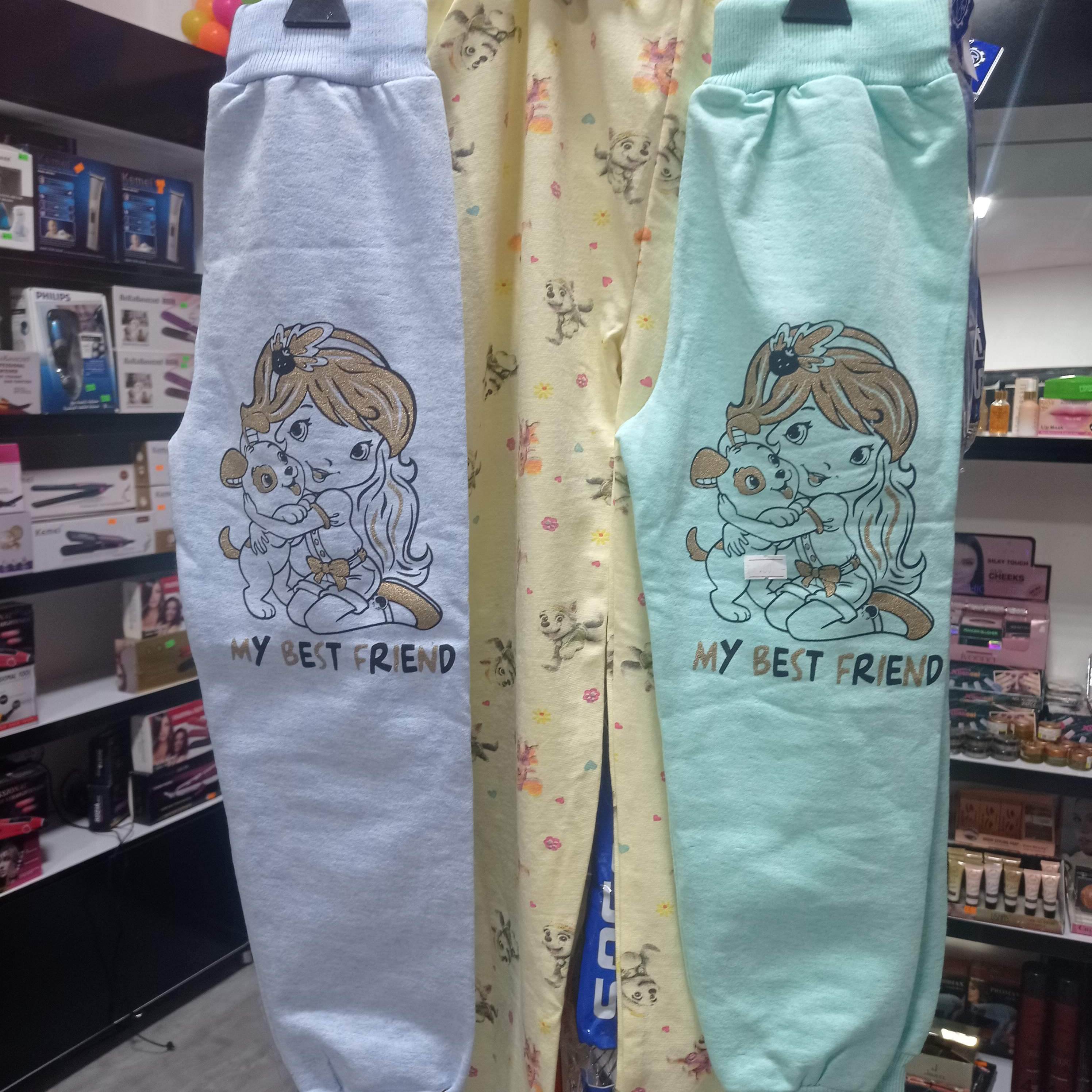 شلوار راحتی بچه گانه نخی طرح دار در سایز =50 در رنگهای صورتی