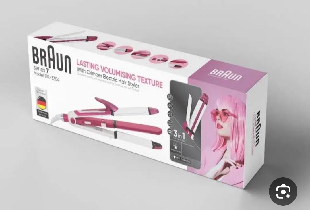 اتو مو سه کاره براون مدل 3304 دارای سه صفحه مناسب صاف کننده، فر کننده و حالت دهنده ی مو می باشد حداکثر دما:200 خاموشی خودکار پس از:30 طول سیم:1.7 متر دارای سیم 360 درجه جنس صفحات:سرامیک گسترهی دما:100 تا 230 درجه سانتیگراد نوع صفحات:متوسط ابعاد صفحات گرم کننده 110 در 30 میلیمتر