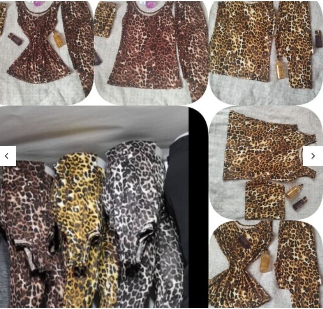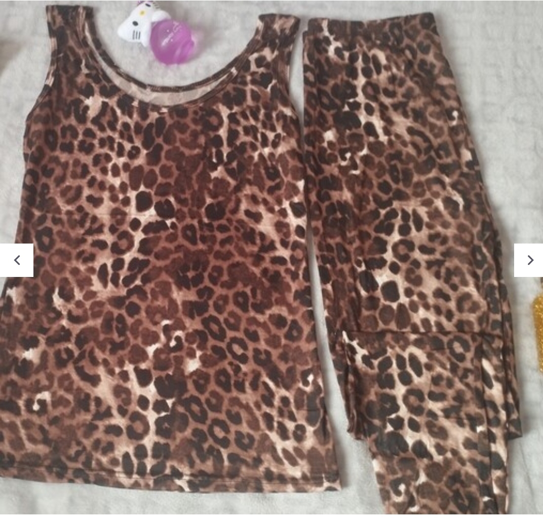 ست لباس تاپ و شلوار زنانه پلنگی جنس گیاهی