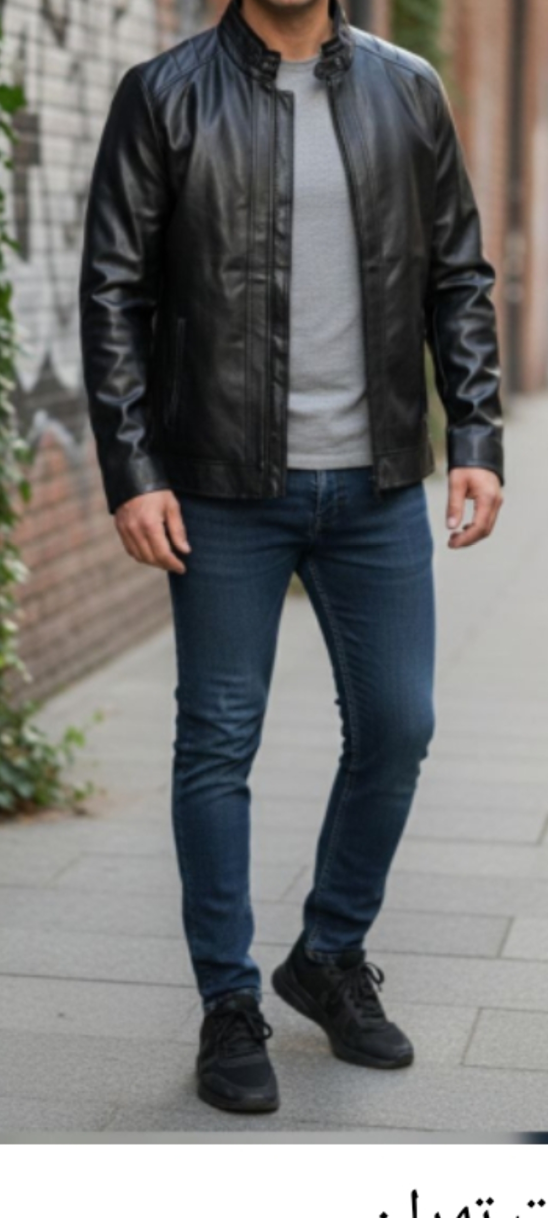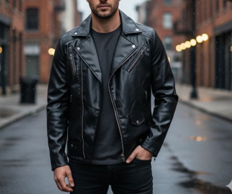 کاپشن چرم اسپرت یقه دار جیب کچ سایز XL